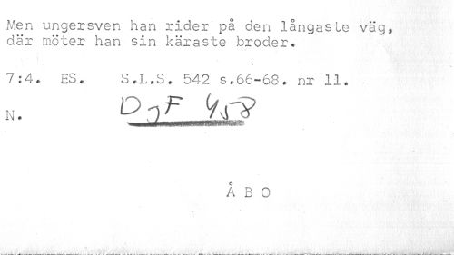//// Men ungersven han rider på den långaste väg, //// där möter han sin käraste broder. //// //// /7:4. ES. S.L.S. 542 s.66-68. nr 11. //// A //// ÅBO //// ------ - ____. . - ___ . ____ . ..— . —- ....— — -__.A—.. —. < ___. ____---- ------ .. —----<--^--- -- ___ ////