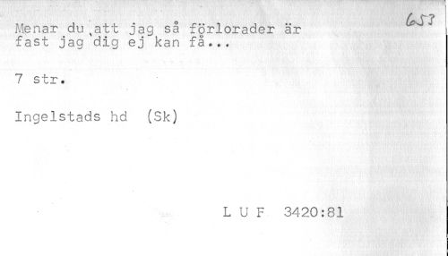 //// Menar du,att jag så förlorader är //// fast jag dig ej kan få... //// 7 str. //// Ingelstads hd (Sk) ////