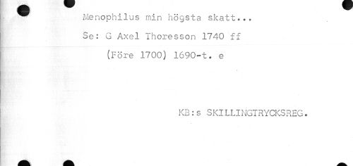 //// ^ Menophilus min högsta skatt.,. //// Se: G Axel Ihoresson 1740 ff //// (Före 1700) 1690-t. e //// K3: s SKlLLINGTRYCKSREG. ////