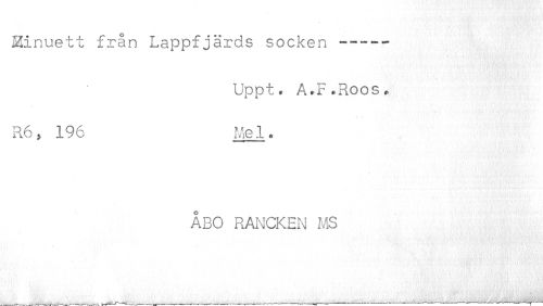 //// Uppt. A.F.Roos, //// R6, 196 Mel, //// ÅBO RANCKEN MS ////