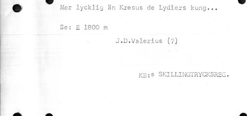 //// Mer iycKiig an Rresus de Lydiers kung... //// Se: E 1800 m //// J.D.Valerius (?) //// ^ ^ //// KB:S SKILLINGIRYCKSREG. //// * * ^ ** ^ . - ////