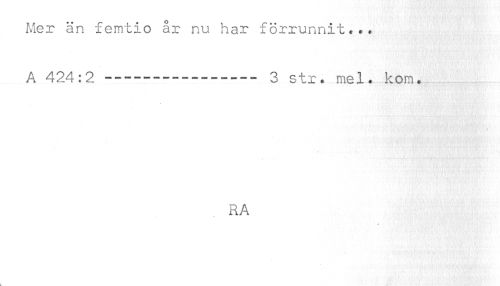 //// Mer än femtio år nu har förrunnit... //// A 424:2 ------ 3 str. mel. kom. //// RA ////