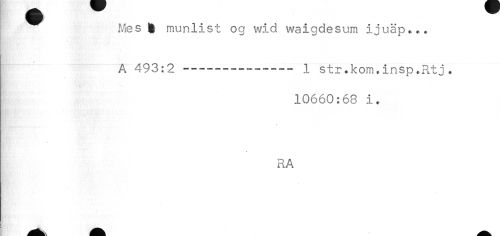 //// Mes $ munlist og wid waigdesum ijuäp**. //// A 493:2 ---- 1 str.kom.insp.Rtj. //// 10660:68 i. //// RA ////