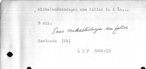 //// ! Mickelsmässodagen som faller in i år.,. //// ! * //// 9 str. //// Ravlunda (Sk) //// t //// L U F 3406:13 ////