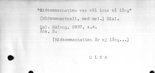 //// ? //// "Eidsornmarnatten var väl inte så lång" //// (Midsommartrall, med mel.) Dial. //// Dal. Malung, 8937, s*4. Ahs, S. //// (Midsommarnatten är ej lång...) //// » ////