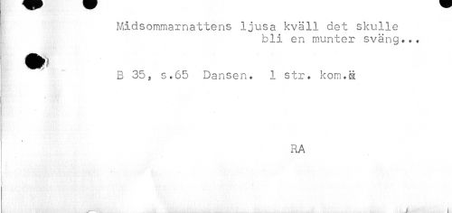 //// Midsommarnattens ljusa kväll det skulle //// bli en munter sväng*** //// B 35, s.65 Dansen. 1 str* kom. a //// * //// t //// « //// RA //// | //// r //// 'i //// J ////
