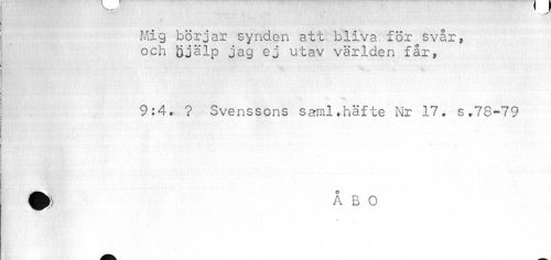 //// Mig börjar synden att bliva för svår, och Hjälp jag ej utav världen får, //// i //// 9:4. ? Svenssons sarml.häfte Nr 17. s.78-79 ////