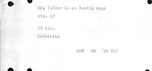 //// ¦ m //// Mig faller in en lustig saga sid.. 63 //// * //// 10 str. Skämtvisa //// ARW MS Vs 2:1 //// //// /I AV ^H^^ j/t^k ////