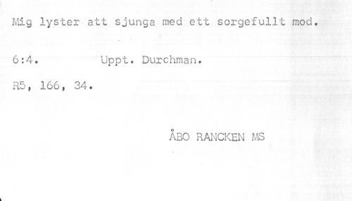 //// Mig lyster att sjunga med ett sorgefullt mod. //// 6:4. Uppt. Durchman. //// R5, 1661 34. //// ÅBO RANCKEN MS //// i ////
