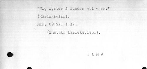 //// "Mig lyster i lunden att vara-1' (Kärleksvisa) • Nrk, 89:27, s.17. //// « //// (Enstaka kärleksvisor)• //// >' • - • //// tixSSSk //// •• ////