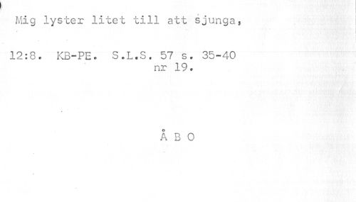 //// I? Mig lyster litet till att sjunga //// f //// 12:8. KB-PE. S.L.S. 57 s. 35-40 //// nr 19. //// i //// ÅBO //// » ////