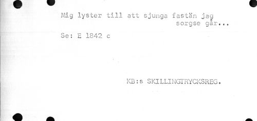 //// | Mig lyster till att sjunga fastän jag //// sorgse går... //// Se: E 1842 c //// * //// KB:s SKILLINGTRYCKSREG. //// • - • , ////