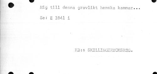 //// * Mig till denna gravlikt hemska kammar... //// Se: E 1841 i //// » //// t ¦ //// » //// % //// B //// KB:s SKlLLINGTRYCKSREG. //// • • • • . //// I. ////