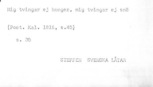 //// Mig tvingar ej hunger , mig tvingar ej snö //// //// /(Poet. Kal. 1816, s.45) s. 35 //// STEFFEN SVENSKA LÅTAR ////