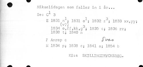 //// I Mikaelidagen som faller in i år.,. //// Se: C1 3 //// E 1831 n1: 1831 o1; 1832 z3; 1833 xx,yy; //// (V?) o //// 1834 o,ff,kk,g j 1835 c; 1836 rr; 1838 t; 1840 n //// F Anrep c S^o^o //// N 1834 p; 1838 c; 1841 a; 1854 b //// KB:s SKlLLINGTRYCKSREG. ////