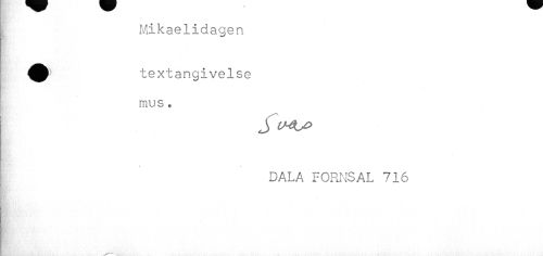 //// » //// j Mikaelidagen //// m //// textangivelse //// mus * //// s //// s //// DALA FORNSAL 716 //// m i ////