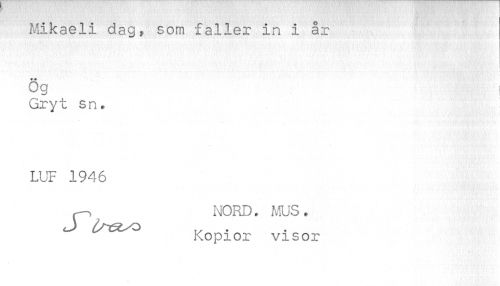 //// Mikael! dag, som faller in i år //// i //// Og ! //// Gryt sn* //// LUF 1946 //// ^ NORD. MUS. //// Kopior visor ////