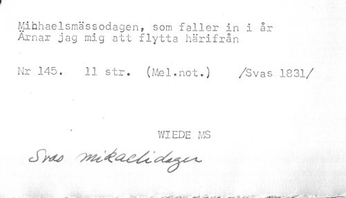 //// MihhaeIsmassodagenf som faller in i år Arnar jag mig att flytta härifrån //// Nr 145. 11 str» (Mel.not.) /Svas 1831 //// /WIEDE MS //// .. ¦ ^ ^ _ " _ ___- ////