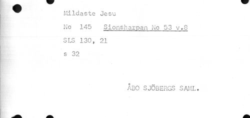 //// ™ Mildaste Jesu //// I No 145 Sionsharpan No 53 v,8 //// SLS 130, 21 //// j //// s 32 //// ( ÅBO SJÖBERGS SAML. //// > ////