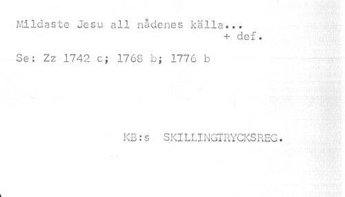//// Mildaste Jesu all nådenes källa... //// + def. //// Se: Zz 1742 c; 1768 b; 1776 b //// KB:s SKlLLINGTRYCKSREG. //// i ////
