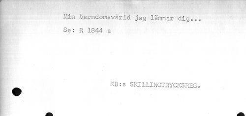 //// I barndomsvärld jag lämnar dig... //// I Se: R 1844 a //// I ^ KB:s SKILLINGTRYCKSREG. //// * ////