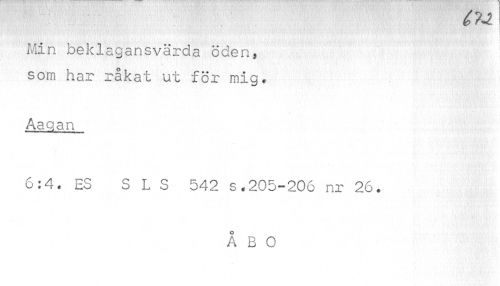 //// G te //// Min beklagansvärda öden, : //// i. //// som har råkat ut för mig. Aagan //// 6:4. ES SLS 542 s.205-206 nr 26. //// ÅBO ////