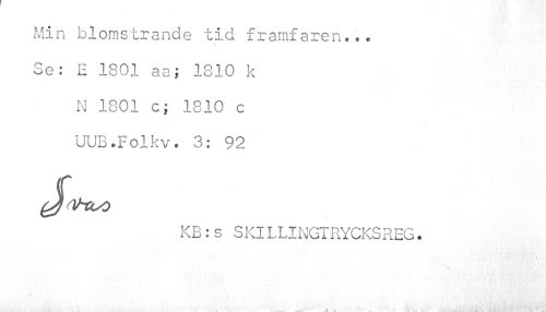 //// Min blomstrande tid framfaren... Se: E 1801 aa; 1310 k N 1801 c; 1810 c UUB.Folkv. 3: 92 //// KB:s S KlLLINGTRYCKSREG. ////