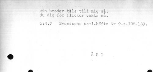 //// re 1 AK 'i ' V ' //// t * r ^^ //// Min broder tåla till mig så, du dig för flickor vakta må. //// 5:4.? Svenssons saml.häfte Nr 9.s.138-139. //// ¦P //// i ////