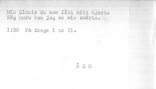 //// Min Cloris du som fått mitt hjerta Säg huru kan jag se min smärta. //// •» i • i • i » \ 1 *•.* i* ; VJ * ; s .• 1 V '4 ¦ \ « //// 1:20 PA Brage 1 nr 31. //// ÅBO ////