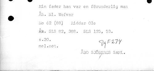 //// Min fader han var en förunderlig man //// • Åb* NI. Wefvar //// [ No 62 (88) Riddar Ole //// Äfe. SLS 82, 388» SLS 125, 53. //// s*20* ^ctz ii //// mel.not. f //// ÅBO SJÖBERGS SAML. ////