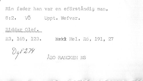 //// Min fader han var en oförståndig man} 8:2, VÖ Uppt. Wefvar. //// Rieldar Olof . //// R3, 165, 123. Nakl Mel. R6, 191, 27 / ÅBO RANCKEN MS ////
