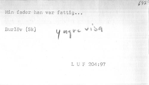 //// \J/' I //// 1 I //// Min fader han var fattig.., //// % //// Burlöv (Sk) y r v V i //// 7 1 //// L U F 204:97 ////