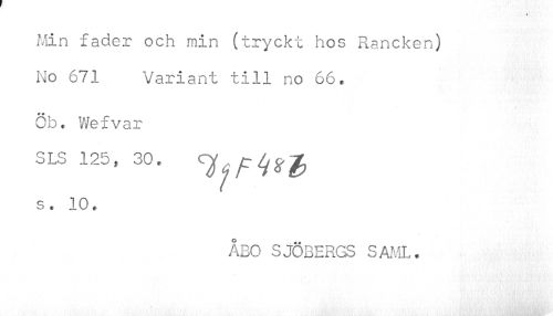 //// Min fader och min (tryckt hos Rancken) No 671 Variant till no 66. //// Öb. Wefvar SLS 125, 30. //// s. 10. //// ÅBO SJÖBERGS SAML. ////