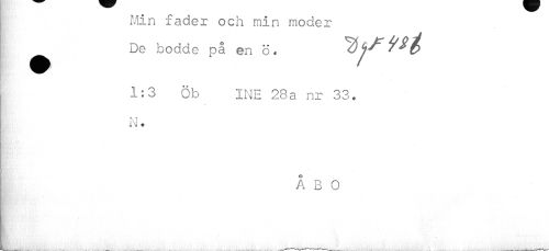 //// Min fader och min moder De bodde på en ö * //// ^Y 9*t> //// 1:3 Öb INE 28a nr 33. N. //// | //// ÅBO ////