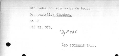 //// Min fader och min moder de bodde De n bortsaIda flickan» //// I No 36 //// SLS 82, 373. //// < //// ! W ÅBO SJÖBERGS SAML• //// - - - ////