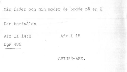 //// Min fader och min moder de bodde på en ö Den bortsålda //// Afz II 14:2 Afz I 15 //// DgF 486 //// GEIJER-AFZ. ////