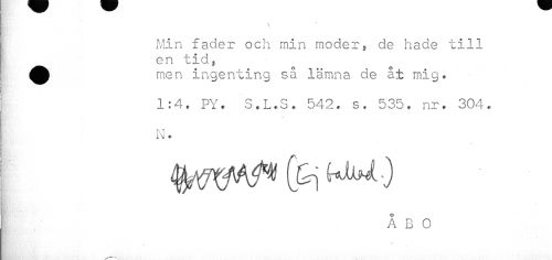 //// v //// Min fader och min moder, de hade till en tid, //// •men ingenting sa lämna de at mig» //// i //// 1:4, PY» S«L.S. 542» s. 535» nr. 304» //// j ' N. //// i^ttftyA^ fe wa.j //// ÅBO ////