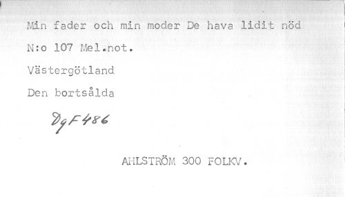 //// I //// Min fader och min moder De hava lidit nöd i //// N:o 107 Mel•not» //// Västergötland //// j //// Den bortsålda //// I //// ri 1 j //// •k //// AHLSTRÖM 300 FOLKV. ////
