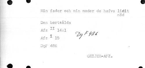 //// Min fader och min moder de hafva lidit //// nöd //// Den bortsålda //// Af z 11 14:1 ^ . //// Af z 1 15 //// /DgF 486 //// GHIJER-AFZ. //// » ////