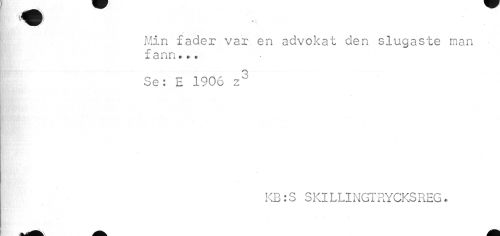 //// I Min fader var en advokat den slugaste man //// fann... //// I 3 //// Se: E 1906 z^ //// ¦ //// au //// i.-, * //// KB:S SKlLLINGTRYCKSREG. //// « //// »^m ^ ä ////