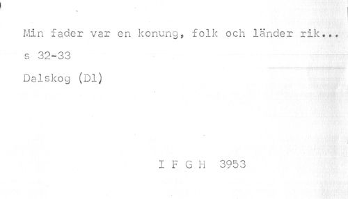 //// % . //// I //// Min fader var en konung, folk och länder rik... s 32-33 Dalskog (Dl) //// I F G H 3953 ////