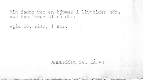 //// Min fader var en köpman i livstiden här, och han levde si så där: //// Vgld 56, Visa, 1 str. //// t //// ANDERSSON SV. LÅTAR ////