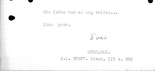 //// ¦ //// Min fader var en ung soldat... | Utan prov. //// • » //// & vt Ä //// i iA^X) //// NORD.MUS. //// I E.U. 20407. Visor, III s. 905 ////