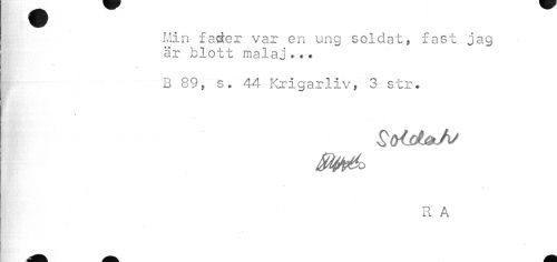 //// Min fader var en ung soldat, fast jag är blott malaj..« //// B 89, s. 44 Krigarliv, 3 str. //// - //// SöldbJi //// /M^o //// R A ////