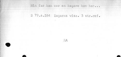 //// Min far han var en bagare han han... B 79.s. 184 Bagarns visa. 3 str.ref. //// Ml S R ; //// RA ////