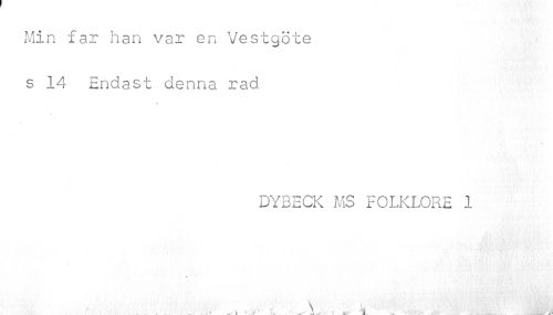 //// Min far han var en Vestgöte s 14 Endast denna rad //// DYBECK MS FOLKLORE 1 //// . „f \ L //// . . • r ¦-.'>* * k > . ' . ¦ ^ U ^ : * ** 1 J K . • . - Jr4 ////