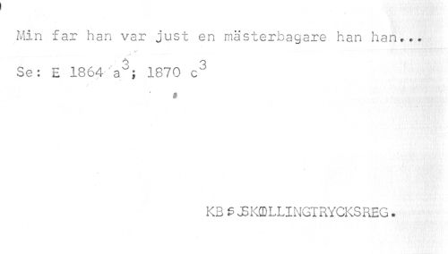 //// Min far han var just en mästerbagare han han... //// jr //// Se: E 1864 a3; 1870 c3 //// * • //// I //// KB S J5 KCD L LI NGT RYCKS REG. ////