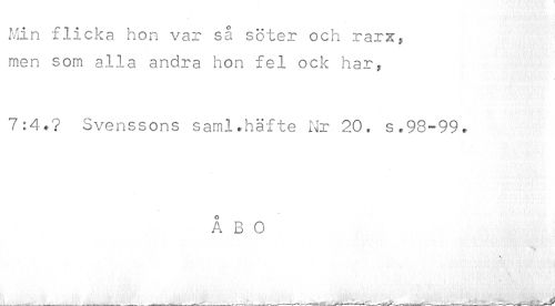 //// Min flicka hon var så söter och rarx, men som alla andra hon fel ock har? //// 7:4.? Svenssons saml.häfte Nr 20. s.98-99. //// »» //// ÅBO //// v ////