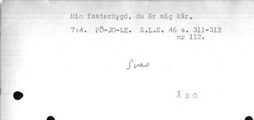 //// [i Min fosterbygd, du är mig kär, //// 7:4, FÖ-JO-LE. S.L.S. 46 s. 311-312 //// nr 112. //// m //// i //// ^ fek jåt mm M ////