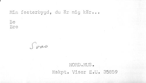 //// Min fosterbygd, du är mig kär... .. //// Bo Bro //// J //// NORD. MUS. Mskpt. Visor E.U. 35859 ////
